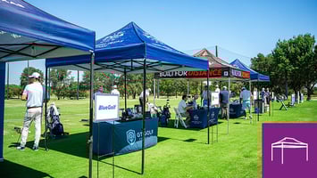Josh Stasinos, Development Manager at Nuzzles & Co., explained that the custom tent played a critical role in drawing people in. "When we get to an event, usually the first thing that goes up is the canopy. It's so visible. People know our colors, they see our logo, and they come looking for the puppies," he said. "The canopy is the thing that gets people's attention and draws them to all the other lovely things that we have to offer."